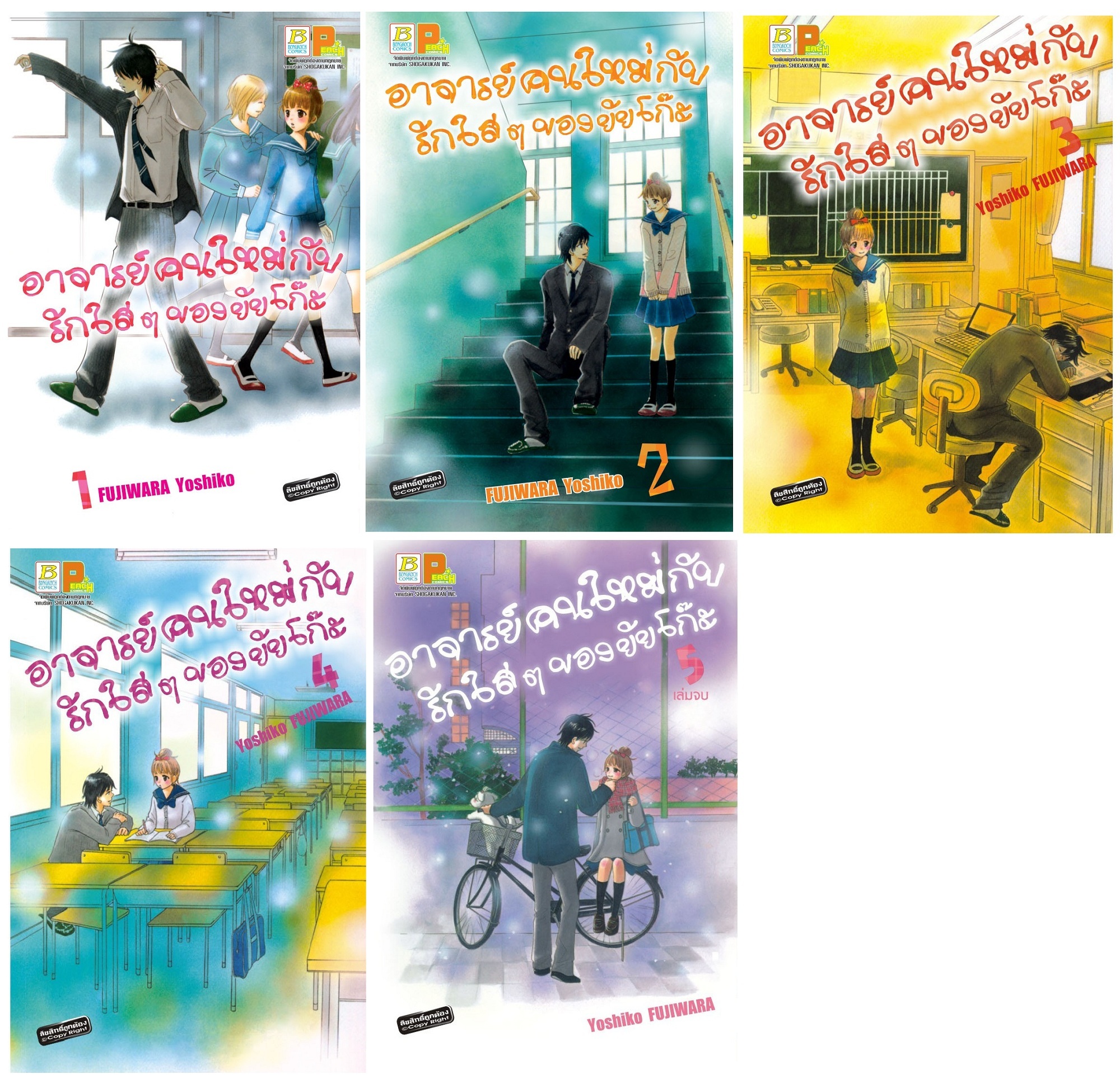 ประกอบด้วยหนังสือการ์ตูนญี่ปุ่นเรื่อง อาจารย์คนใหม่กับรักใสๆ ของยัยโก๊ะ เล่ม 1-5 (จบ)รายละเอียด:จิโร่ อาจารย์คนใหม่ที่เข้ามาสอนในภาคเรียนที่ 2 ทั้งที่เป็นผู้ใหญ่แต่นิสัยยังเหมือนเด็ก ทำให้นักเรียนในห้องรู้สึกคุ้นเคยกับจิโร่ได้ในเวลาอันรวดเร็ว เมื่ออาจารย์รักปากว่าจะช่วยให้สมหวังในความรัก โคโคโระจึงเผลอบอกเรื่องคนที่ตัวเองชอบให้อาจารย์รู้ แต่ฟูวะคนที่โคโคโระชอบกลับมีท่าทีไม่ค่อยชอบหน้าอาจารย์ซะนี่...? ติดตามเรื่องราวของวัยรุ่นที่ส่องประกายซึ่งจะทำให้หัวใจอบอุ่นได้ใน “อาจารย์คนใหม่กับรักใสๆ ของยัยโก๊ะ”ผลงานของผู้วาด “รักใสๆ กับนายตัวแสบ” กับ “เกลียดชะมัดนายขี้เก๊ก”!ประเภท: ROMANTIC COMEDYระดับผู้อ่าน: 13 ปีขึ้นไปคนเขียน/คนวาด: Yoshiko FUJIWARA