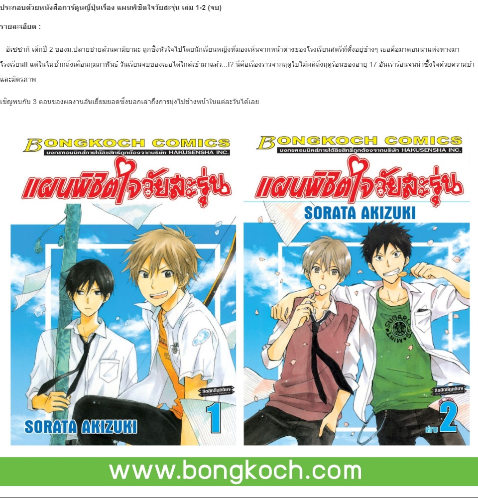 ชื่อหนังสือ แผนพิชิตใจวัยสะรุ่น เล่ม 1-2 (จบ) ประเภท การ์ตูน ญี่ปุ่น บงกช Bongkoch *ราคานี้รวมค่าจัดส่งแล้ว