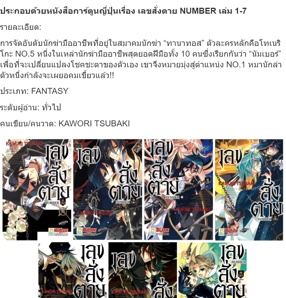 ชื่อหนังสือการ์ตูนญี่ปุ่น เรื่อง เลขสั่งตาย NUMBER เล่ม 1-7 (จบ) ประเภท การ์ตูน ญี่ปุ่น บงกช Bongkoch