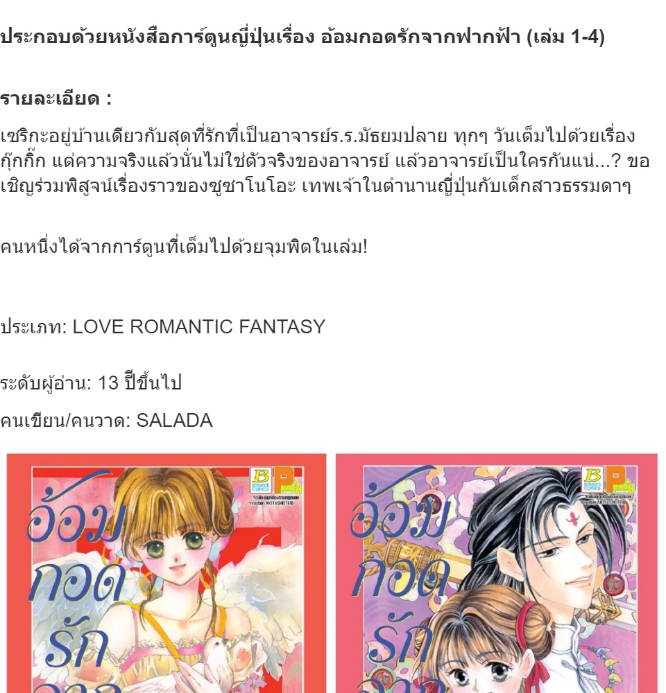 ชื่อหนังสือการ์ตูนญี่ปุ่น เรื่อง อ้อมกอดรักจากฟากฟ้า เล่ม 1-4 (จบ) ประเภท การ์ตูน ญี่ปุ่น บงกช Bongkoch