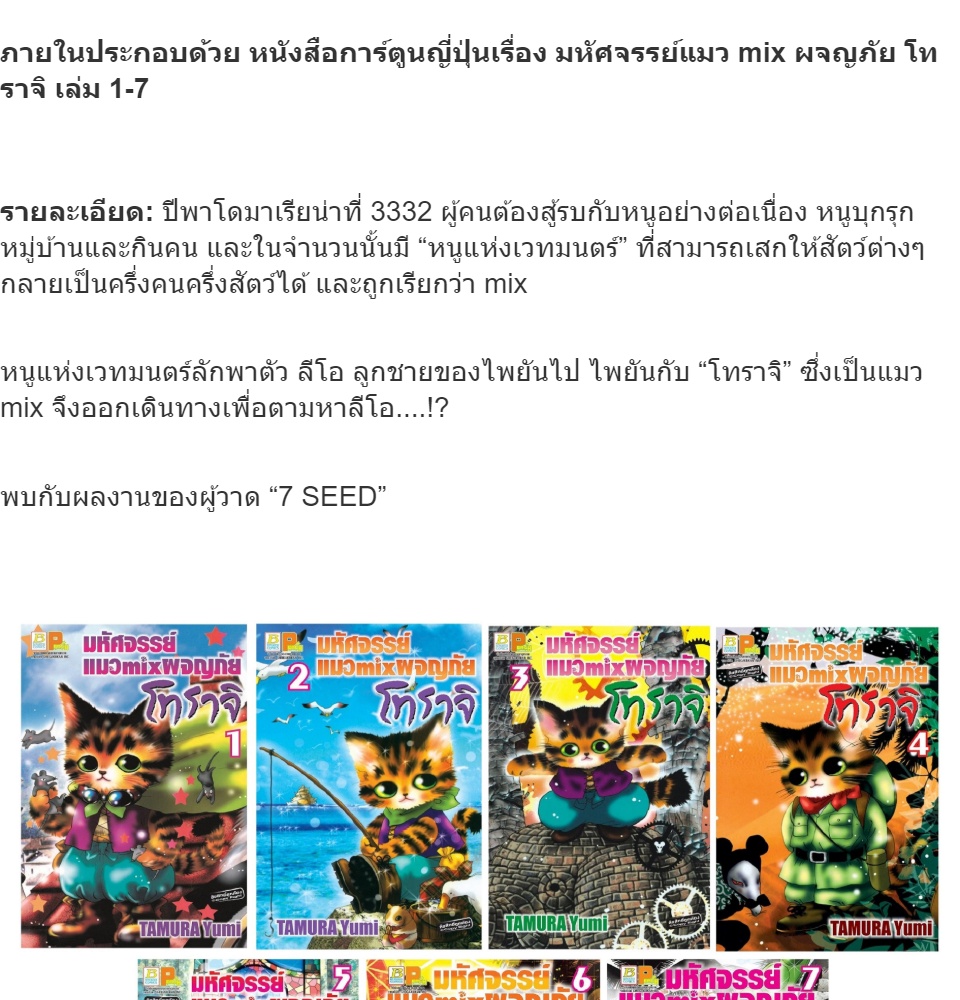 ชื่อหนังสือการ์ตูนญี่ปุ่น เรื่อง มหัศจรรย์แมว mix ผจญภัย โทราจิ เล่ม 1-7 *มีเล่มต่อ ประเภท การ์ตูน บงกช bongkoch