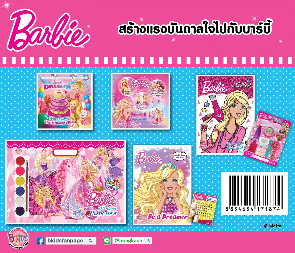 หนังสือชุดพิเศษ 0819! ชุดที่ 1 สร้างแรงบันดาลใจไปกับบาร์บี้ ประกอบด้วย- Barbie Puzzle Bookรายละเอียด: มาช่วยกันเนรมิตเรื่องราวของบาร์บี้ในหนังสือจิ๊กซอว์แสนสนุก Barbie Puzzle Story book สุดมหัศจรรย์ พร้อมเต็มอิ่มกับนิทานสุดประทับใจ 5 เรื่อง 5 รสชาติความสนุก ยินดีต้อนรับเข้าสู่โลกแสนมหัศจรรย์ของฉัน....- Barbie: All About Princess Giant Coloring book +ชุดสีรายละเอียด: เพลิดเพลินในโลกของเจ้าหญิงบาร์บี้ในสมุดภาพระบายสีเล่มยักษ์ ตระการตากับฉากแสนสวยและเรื่องราวสุดประทับใจ ยินดีต้อนรับเข้าสู่โลกของเจ้าหญิงบาร์บี้!ประเภท: ระบายสี- Barbie Dreamtopia คำขอวันเกิดรายละเอียด: ผจญภัยดินแดนแห่งฝันไปกับบาร์บี้! งานฉลองวันเกิดของเชลซีใกล้เข้ามาแล้ว แต่เธอยังไม่รู้ว่าจะอธิษฐานขออะไรดี มาเอาใจช่วยเชลซีตามหาคำอธิษฐานของเธอในดินแดนแห่งความฝันไปพร้อมๆ กับการหยุดยั้งแผนการของออตโต เพื่อนบ้านตัวแสบกันเถอะ!หนังสือเล่มนี้ช่วยเสริมสร้าง ความฉลาดทางสติปัญญา ความฉลาดทางด้านอารมณ์ และความฉลาดในการแก้ไขปัญหาประเภท: นิทาน- Barbie Everyday Beautiful + Beauty Setรายละเอียด: บาร์บี้เป็นสุดยอดช่างทำผม เธอสามารถเปลี่ยนทรงผมให้เพื่อนๆ ดูดีราวกับมีเวทมนตร์ พวกเธอมีวันที่สวยงามด้วยกันเสมอ ไปติดตามเรื่องราวสุดสนุกและเล่นเกมฝึกไหวพริบ แล้วมาทำกระเป๋าสุดเก๋กันนะหนังสือเล่มนี้ช่วยส่งเสริม EQ ความฉลาดทางอารมณ์ ส่งเสริม CQ ความฉลาดในการริเริ่มสร้างสรรค์ และส่งเสริม PQ ความฉลาดที่เกิดจากการเล่นประเภท: ระบายสีและฝึกทักษะ- Barbie Be a Dreamer + ตุ้มหูสติ๊กเกอร์รายละเอียด: ท่องโลกในฝันกับบาร์บี้และผองเพื่อน เพลิดเพลินกับเกมสุดสนุกและภาพระบายสีสุดวิเศษ พร้อมประดิษฐ์กล่องบาร์บี้แสนสวยหนังสือเล่มนี้จะช่วยส่งเสริมความฉลาดทางด้านสติปัญญา ความฉลาดทางด้านอารมณ์ และความฉลาดด้านความคิดริเริ่มสร้างสรรค์ประเภท: ระบายสีและเกมฝึกทักษะ![]() ![]() |