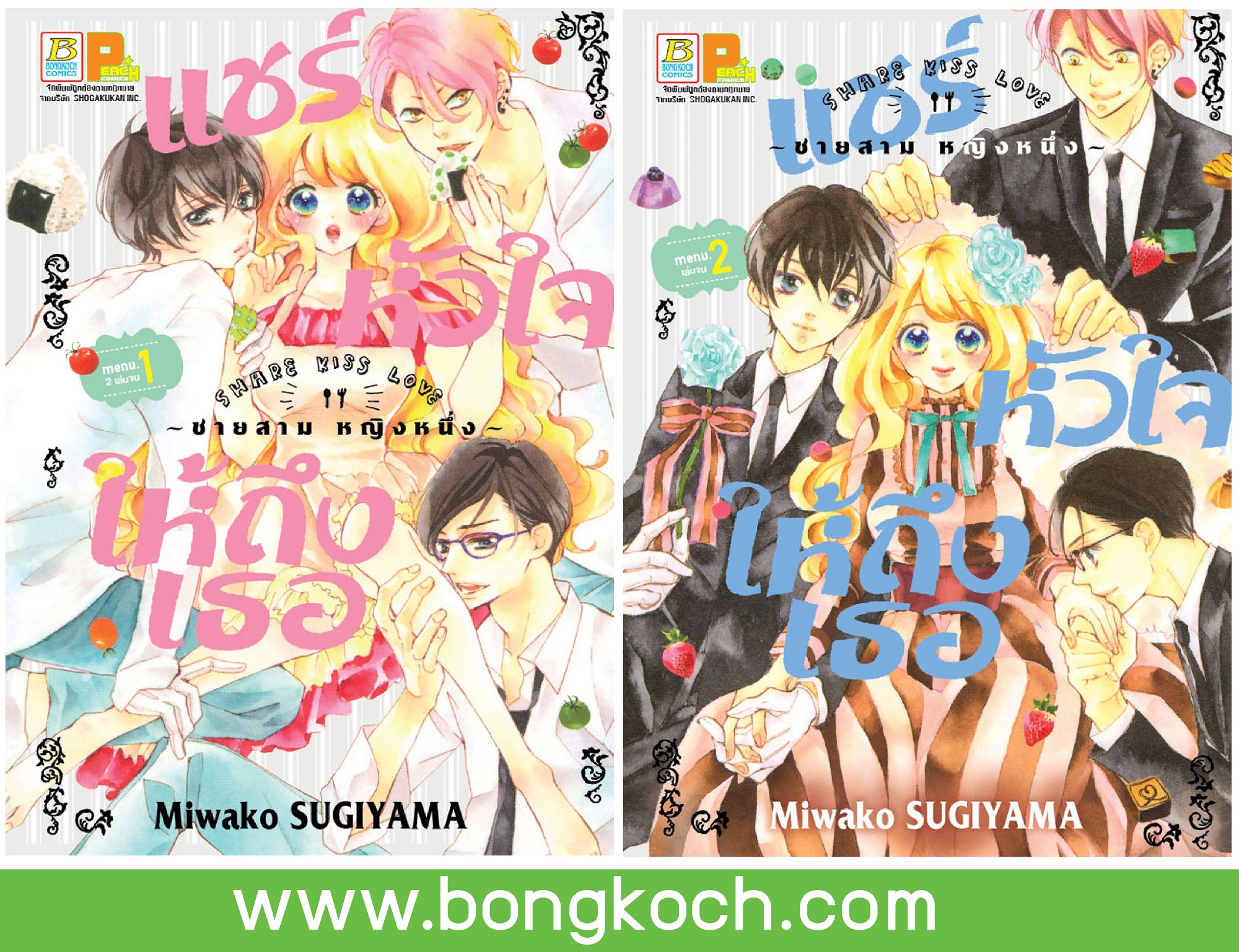 ประกอบด้วยหนังสือการ์ตูนญี่ปุ่น เรื่อง แชร์หัวใจให้ถึงเธอ SHARE KISS LOVE เล่ม 1-2รายละเอียด:ฉันมาโตเกียวตามคำสั่งเสียของย่า และตกหลุมรักยูซึคุงผู้ชายที่มีออร่าเหมือนเทพบุตร แต่ไม่รู้ทำไมผู้ชายคนนั้นถึงได้สนใจฉันและพาฉันมาที่....แชร์เฮาส์ที่ฉันจะต้องอยู่ที่โตเกียว! ซึ่งมีสมาชิกประกอบไปด้วยยูซึคุงซึ่งเป็นโรครักความสะอาด เคียวตะคุงซึ่งสมาร์ทและเป็นคนสนุกสนาน และอาโออิซังซึ่งเป็นพนักงานบริษัทชั้นนำ เอ๊ะ!? นี่ฉันต้องใช้ชีวิตร่วมกับ 3 คนนี้ แล้วจะอยู่อย่างปลอดภัยได้เหรอ?ประเภท: LOVE ROMANTICระดับผู้อ่าน: 13 ปีขึ้นไปคนเขียน/คนวาด: Miwako SUGIYAMA![]() ![]() ![]() ![]() |