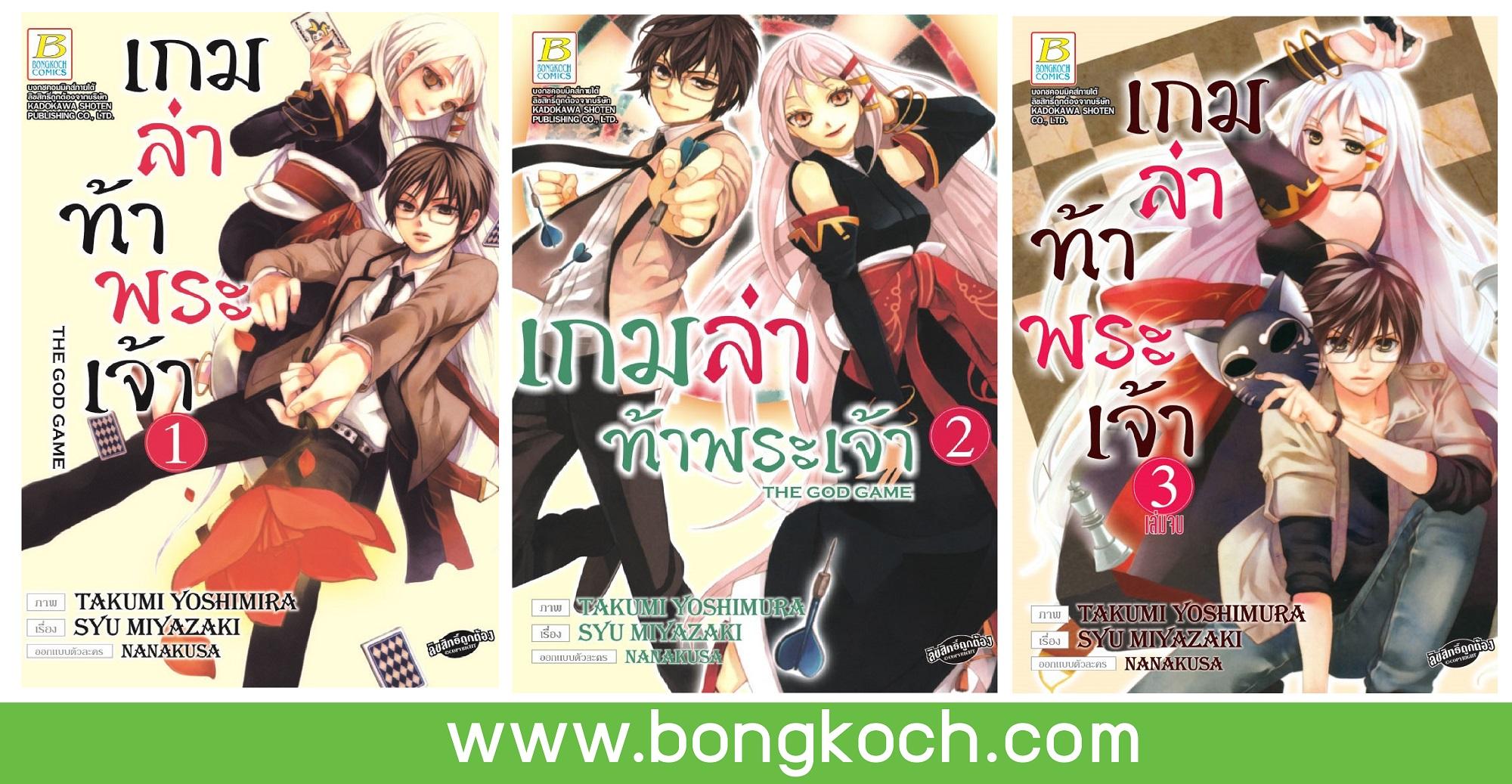 ประกอบด้วยหนังสือการ์ตูนญี่ปุ่นเรื่อง เกมล่าท้าพระเจ้า -THE GOD GAME- เล่ม 1-3รายละเอียด:“เอาล่ะ มาเล่นเกมกันเถอะ!” พระเจ้าซึ่งเป็นผู้สร้างสรรค์โลก ได้เริ่มเกม “ซ่อนแอบ” ระดับโลก! เวทีสุดท้ายอันเป็นสถานที่ซ่อนแอบคือโรงเรียนคาโนอันเต็มไปด้วย “ความปรารถนา” ของเหล่าผู้คน “ถ้าตามหาพระเจ้าที่แอบแทรกซึมมาอยู่ในโรงเรียนนี้ไม่เจอ โลกจะต้องถูกทำลายเป็นจุล” และผู้ที่ได้รับมอบหมายให้ปฏิบัติภารกิจอันหนักอึ้งนี้คือคณะกรรมการนักเรียนประจำโรงเรียนคาโนของพวกทาคาระ... ถึงอย่างนั้นก็มีทั้งงานของกรรมการนักเรียน แถมท่านคาโนเทพประจำถิ่นสุดน่ารัก & คิดไม่ซื่อยังโผล่ออกมาทิ้งคำใบ้บ้าง ออกมากวนบ้าง ในขณะที่เวลากำลังใกล้หมดลงทุกที พวกเขาจะสามารถช่วยโลกนี้ได้หรือไม่!?ประเภท: FANTASYระดับผู้อ่าน: 13 ปีขึ้นไปคนเขียน/คนวาด: TAKUMI YOSHIMURA / SYU MIYAZAKI / NANAKUSA![]() ![]() ![]() ![]() ![]() |