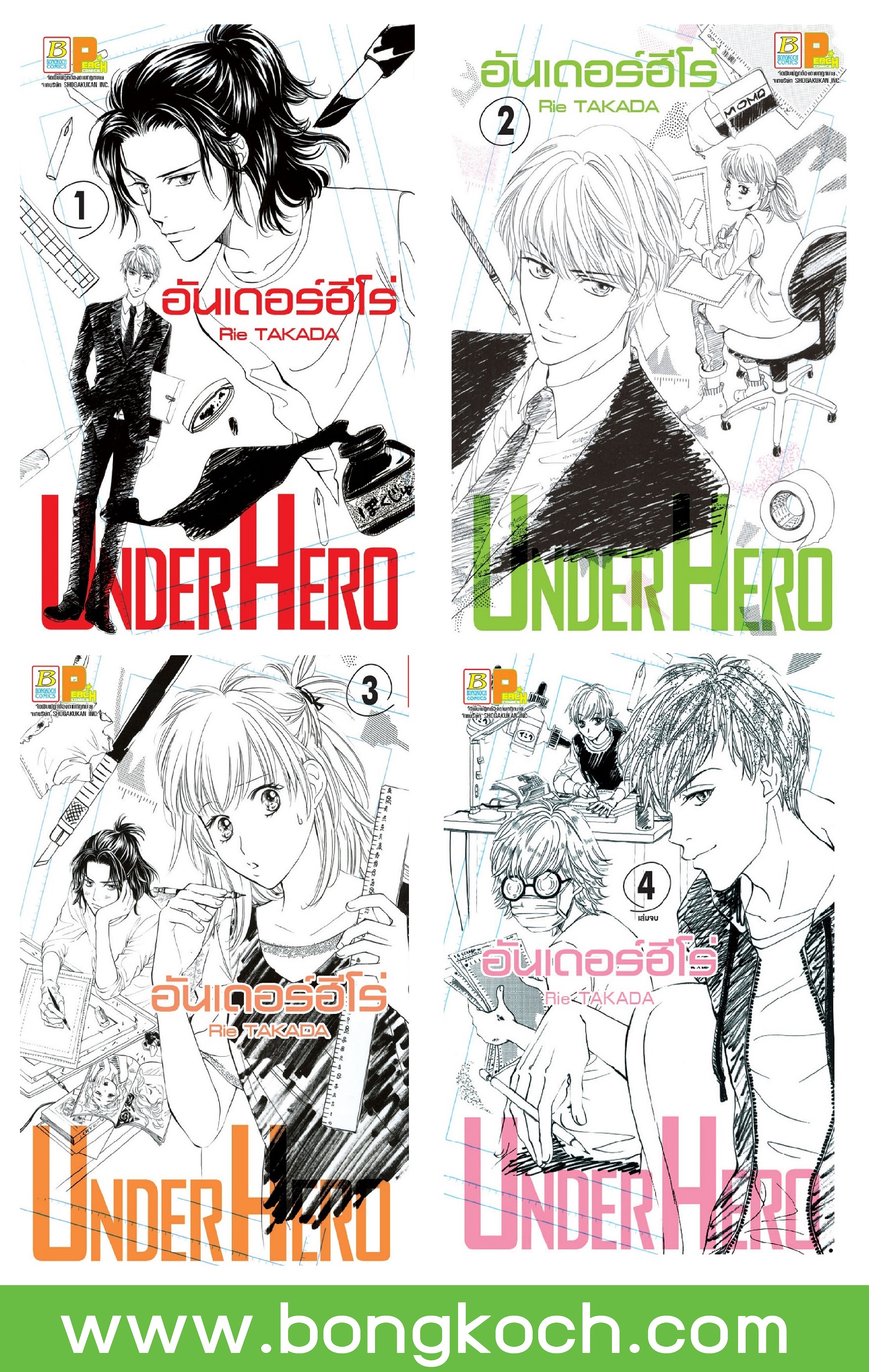 ประกอบด้วยหนังสือการ์ตูนญี่ปุ่นเรื่อง UNDER HERO อันเดอร์ฮีโร่ (เล่ม 1-4)รายละเอียด :มิคาเงะ รันรัน ซุปเปอร์ผู้ช่วยอาชีพ (!?) ได้รับความไว้วางใจจากอิฟู ทันโงะ นักเขียนการ์ตูนชื่อดัง แม้งานจะหนักหนาสาหัสทุกวันแต่รันรันก็ไม่สามารถทิ้งความฝันที่จะเป็นนักเขียนการ์ตูนได้! ถึงแม้ว่าความฝันทำท่าจะล้มไม่เป็นท่า แต่ที่ลุกขึ้นมาได้ใหม่อีกครั้งก็เพราะวาตาริ เทมเป แฟนหนุ่มที่เป็นบ.ก.คอยอยู่เคียงข้าง แต่ก็มีแมลงก่อกวนโผล่มาแทรกระหว่างความสัมพันธ์ของทั้งสอง!? ...นั่นก็คืออาจารย์ทันโงะ...!ประเภท : ROMANTIC COMEDYระดับผู้อ่าน : 13 ปีขึ้นไปคนเขียน/คนวาด : Rie TAKADA
